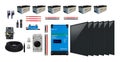 Valitse optioista sopivat kiinnikkeet aurinkopaneelille, sopiva määrä aurinkopaneelikaapelia tai jännitteenalentaja.