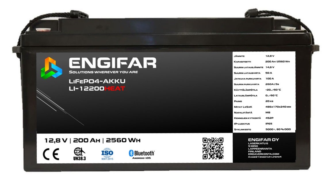 Engifar 200 Ah 12,8V Heat LiFePo4 litiumakku, 12V